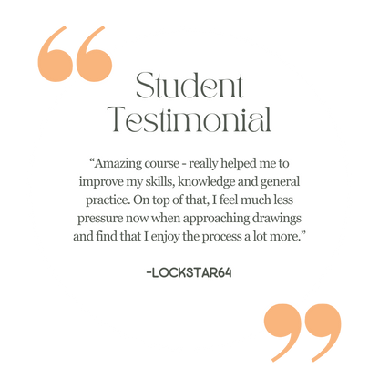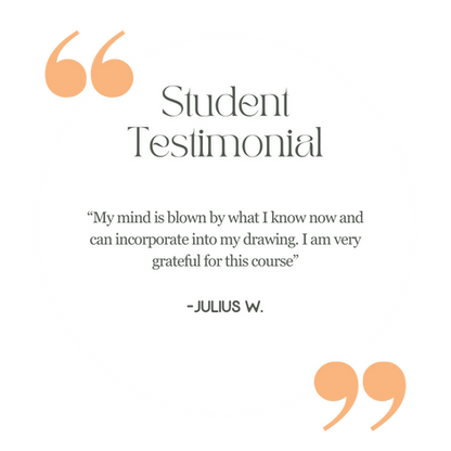 “I don't really know how to explain it... I've taken many classes and a college 101 drawing course but there is just something about the way Gabrielle explains things that just registers. How she breaks things down visually and verbally really clicks for me. I just understand everything she does and know exactly how to apply it to my practice. Really happy with my results from this course as it really helps with my basic understanding of creating a drawing. Super happy! Also you can tell she's very passionate about what she does.” - Breena B.